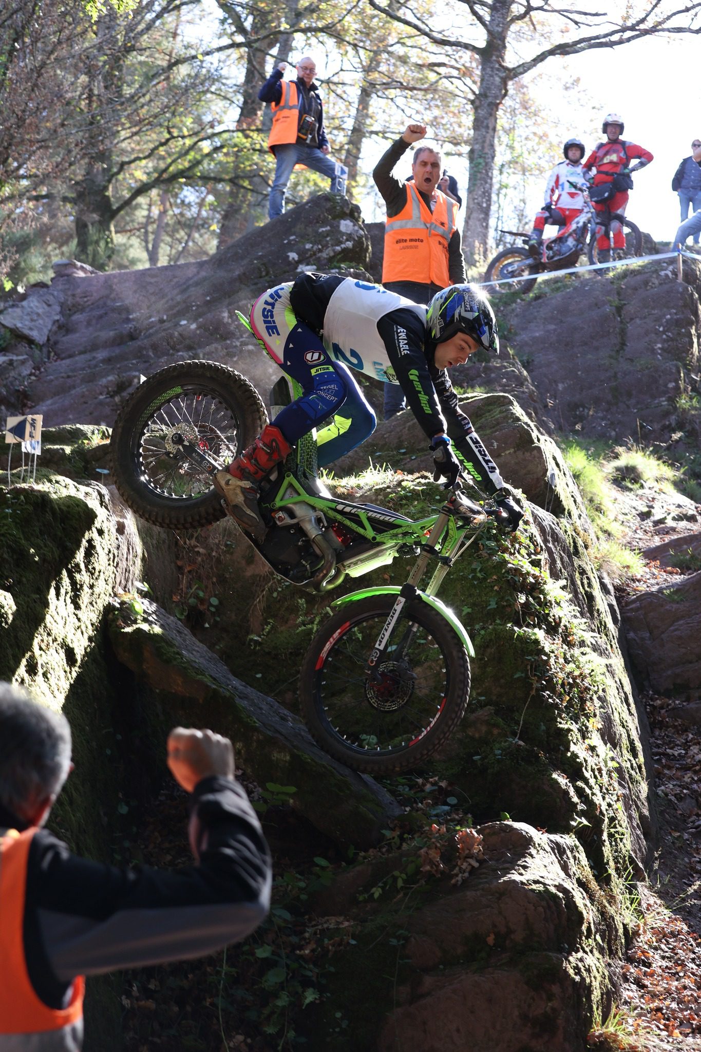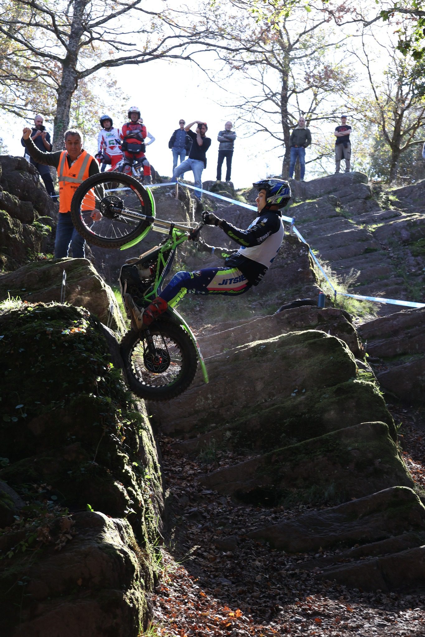 Zondagochtend was het D-day. Met veel zin en motivatie begon ik mijn wedstrijd. Het voelde goed om terug op dit trialterrein te rijden. Er waren 3 rondes met elk 10 zones. Het is de bedoeling in een trial wedstrijd om zo weinig mogelijk punten te behalen op het einde. De eerste en tweede zone reed ik beide 0. Tot op het moment van de laatste zone van ronde 3 had ik nog steeds 0. Als ik de 10e zone ook een 0 ging rijden, eindigde ik op plaats 1. Maar dit gebeurde niet. Juist voor een hoog obstakel had ik panne aan de vering waardoor ik verplicht 5 punten kreeg en dus op de tweede plaats eindigde in het klassement.
